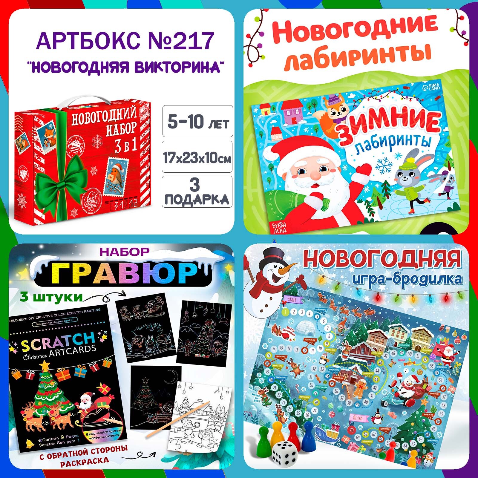 Артбокс №217 "Новогодний лабиринты и гравюры" (3-7 лет) из 3 подарков