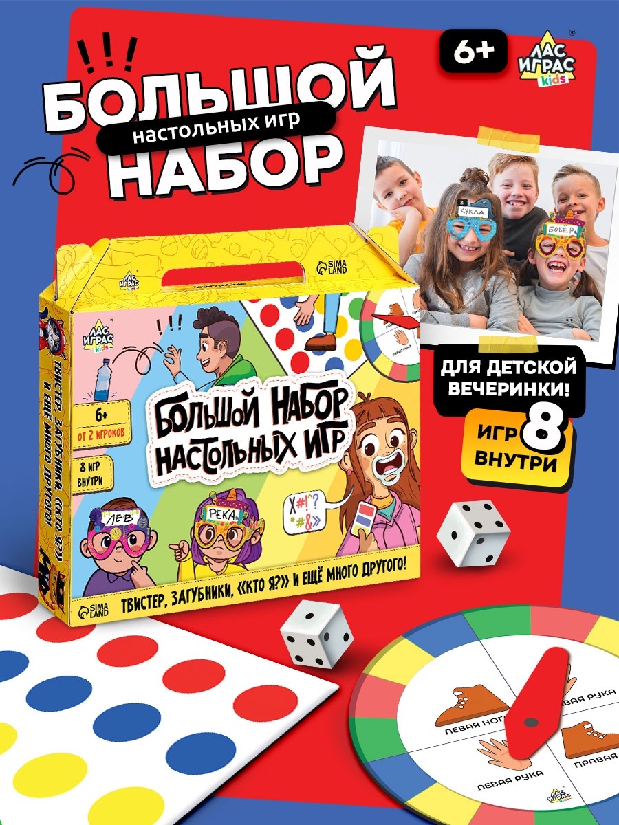Большой набор настольных игр, 8 игр, от 2 игроков, 6+