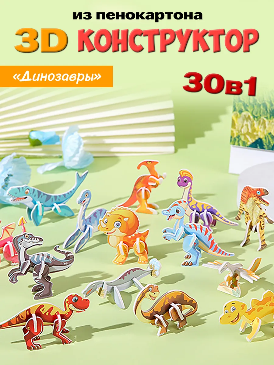 3D-конструктор «Динозавры» — развивающий набор для творчества и сборки объемных фигурок своими руками. Особенно понравится детям, которые любят динозавров и мир древних существ. Подходит для занятий дома, в детском саду, в дороге и в поездке. Во время сборки ребенок развивает мелкую моторику, внимание, логику, усидчивость и воображение. Набор станет как самостоятельным подарком для праздника, так и дополнением к готовому подарку или просто приятным сюрпризом.