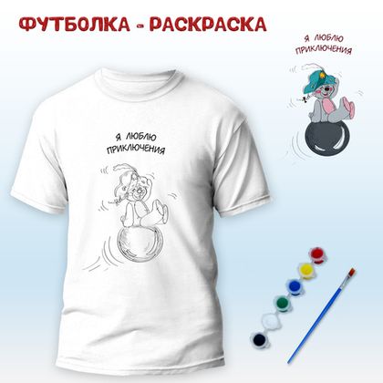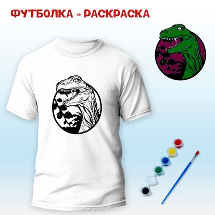 В набор входит: футболка 100% хлопок с принтом, краски по ткани 6 цветов, кисть, инструкция.