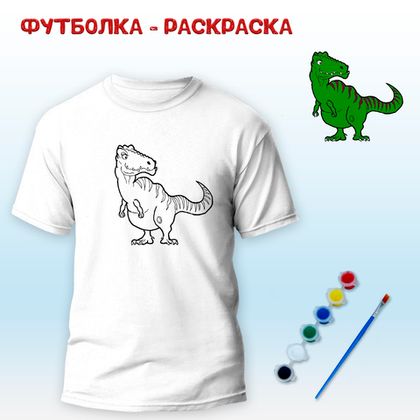 В набор входит: футболка 100% хлопок с принтом, краски по ткани 6 цветов, кисть, инструкция.