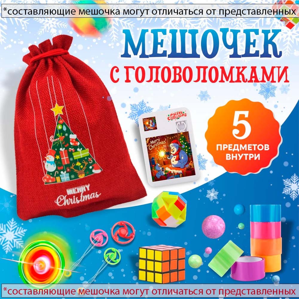 3. Мешочек с головоломками и играми (содержимое мешочка может отличаться от представленных на фото)
