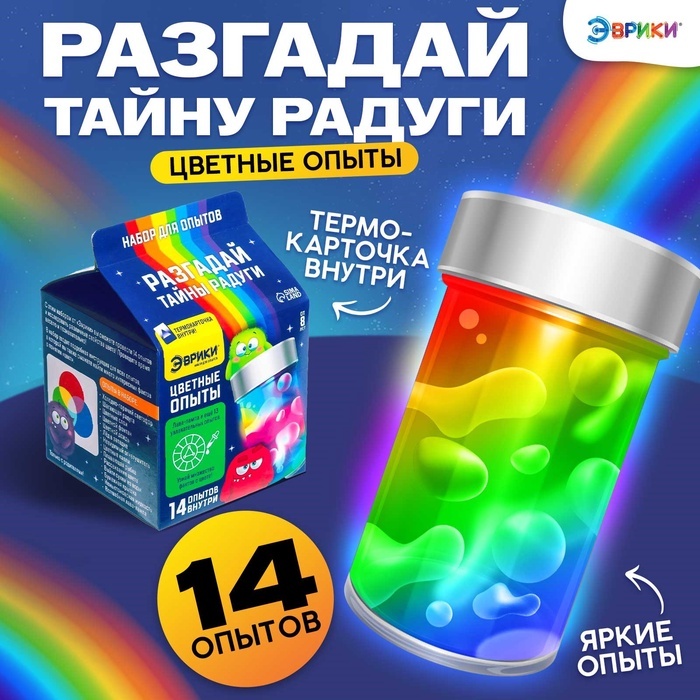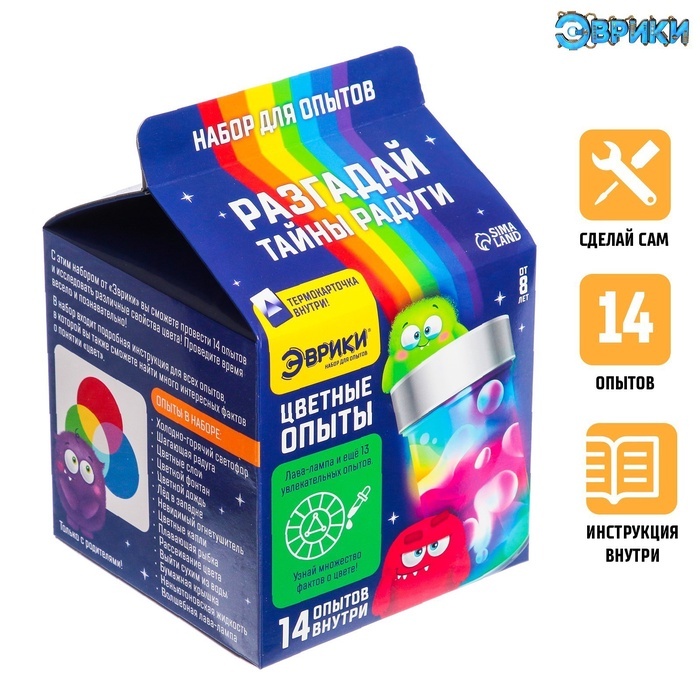 С набором для опытов «Эврики» ребёнок узнает об удивительных свойствах веществ, проведёт 14 ярких опытов и удивит друзей.