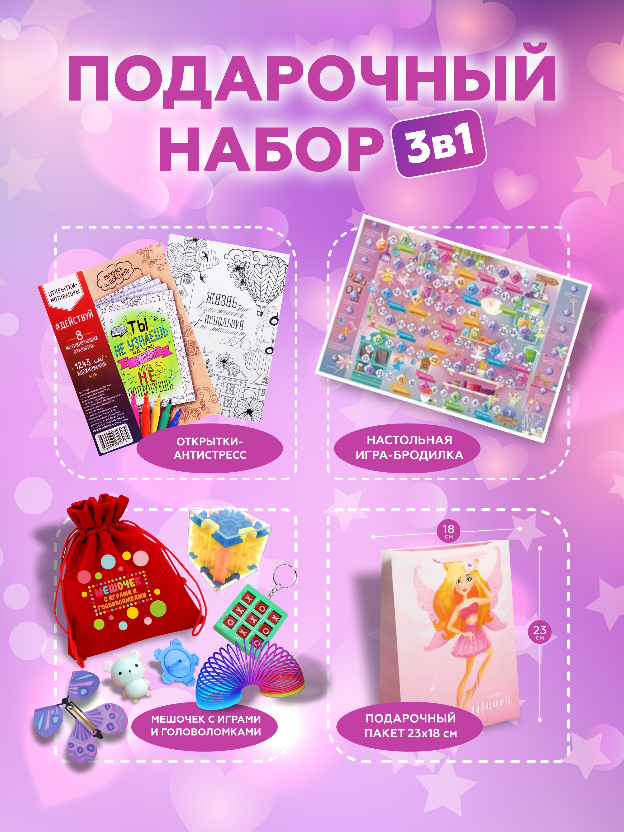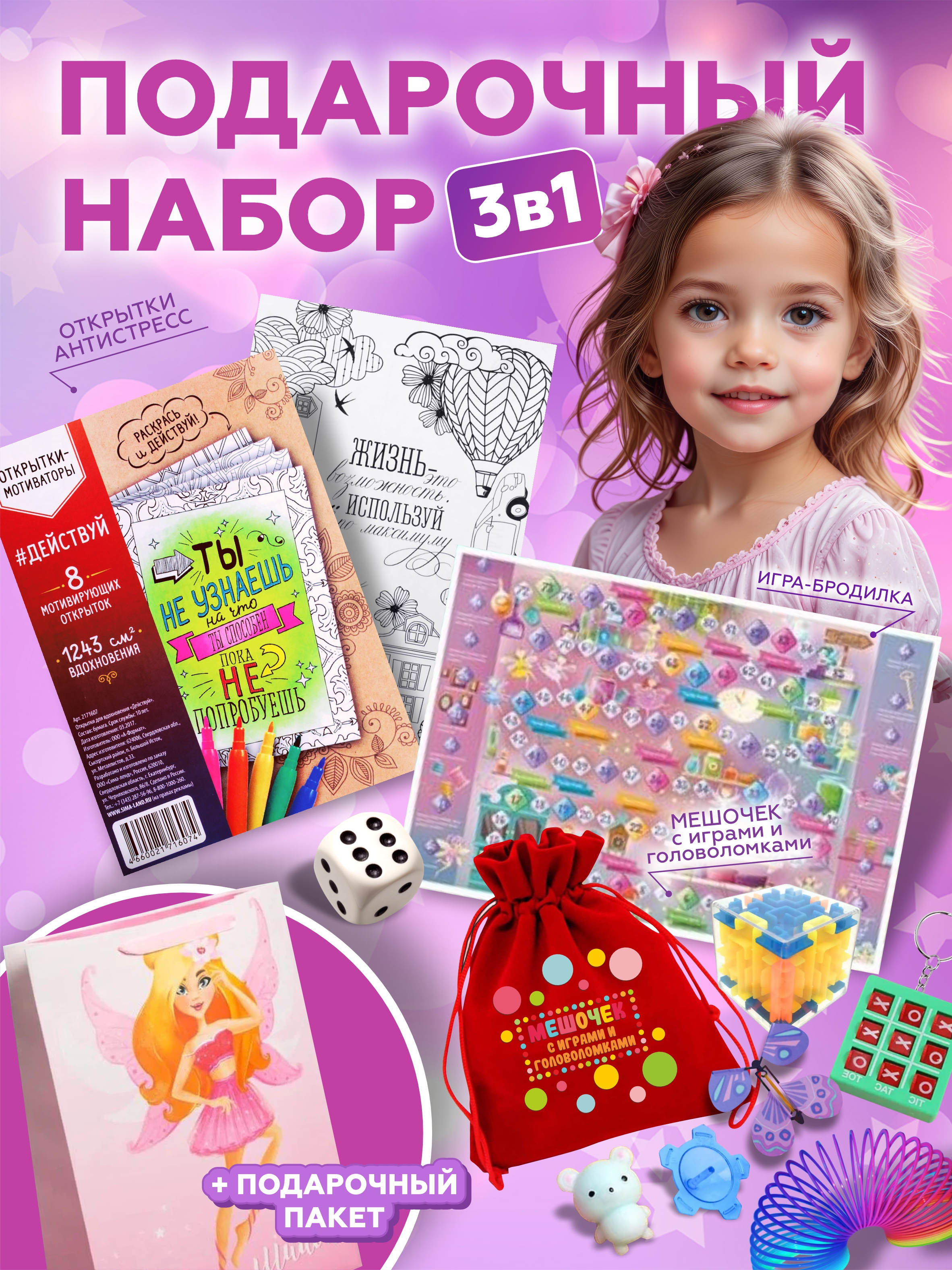 Подарочный набор для девочек станет прекрасным сюрпризом! Внутри вас ждет множество интересных и увлекательных вещей, которые точно понравятся любому ребенку. Подарочный бокс - это идеальный выбор для любого праздника, будь то день рождения, 8 марта или день рождение или просто так.