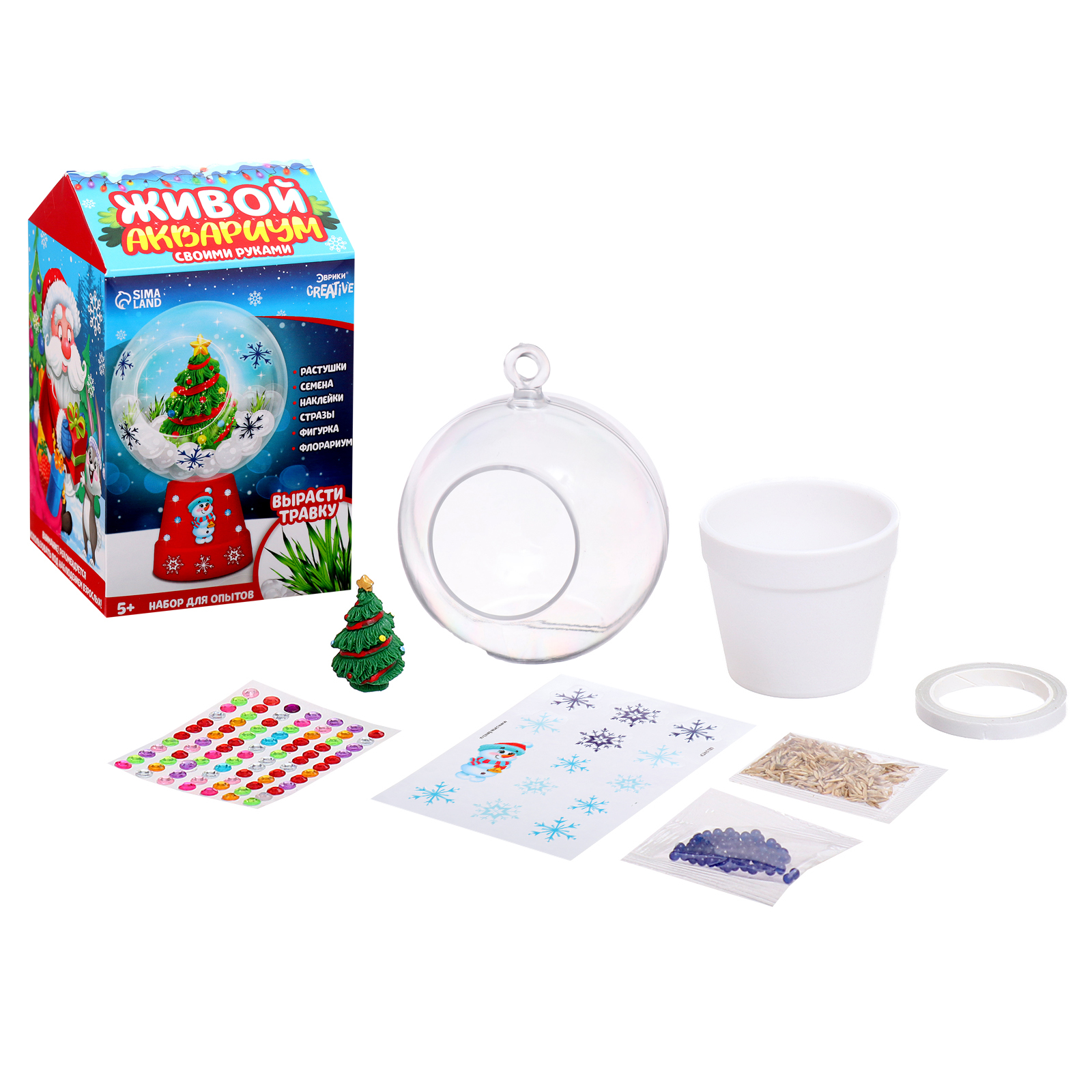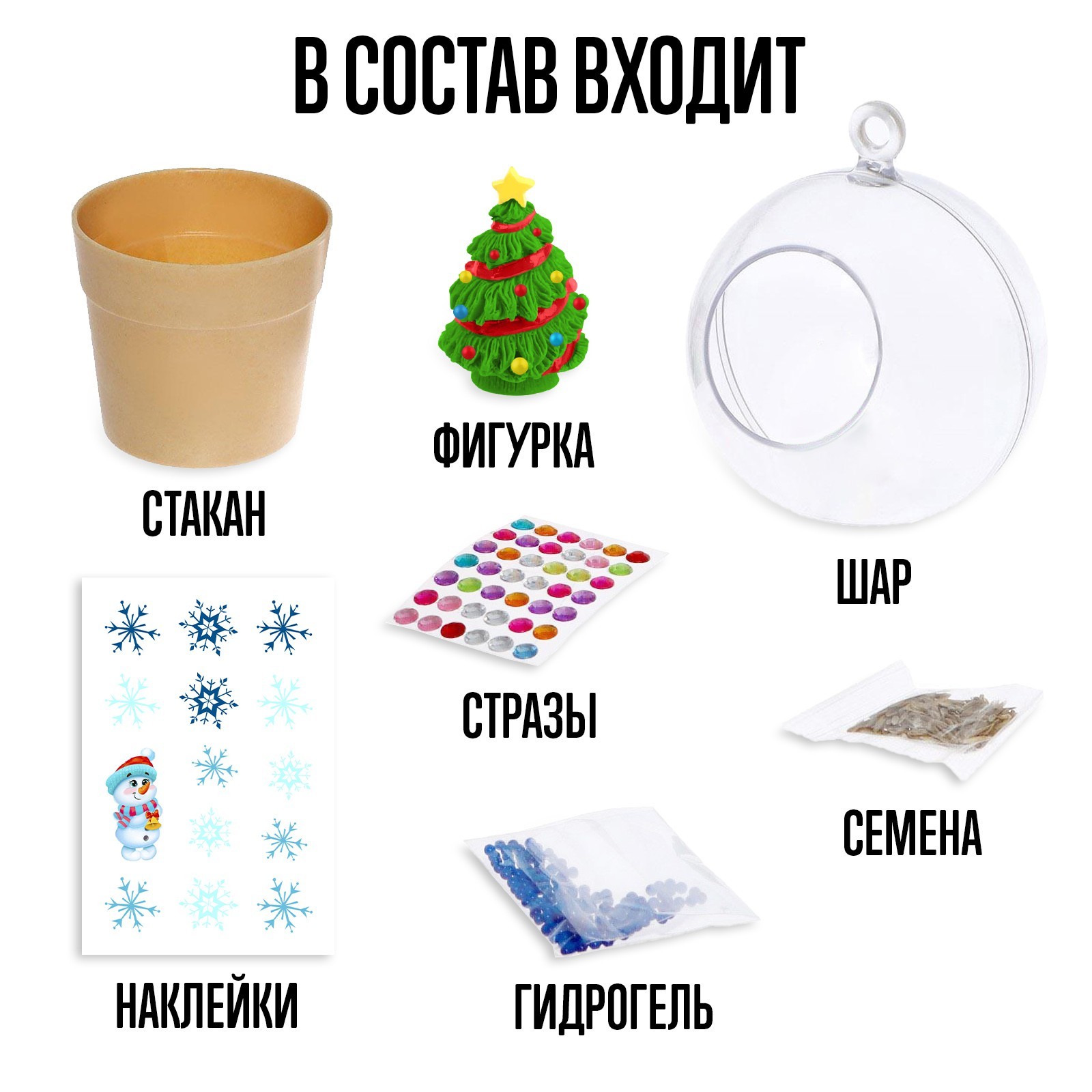 С помощью этого набора ребёнок создаст собственный новогодний мини-сад. Юный исследователь соберёт композицию, украсит её, вырастит гидрогелевые шарики и посадит настоящую траву.