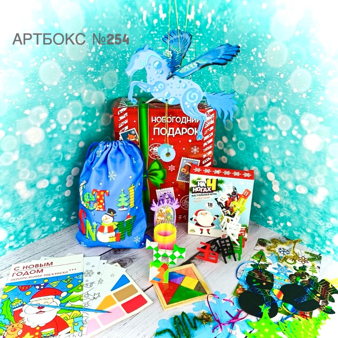 Артбокс №254 "Новогодний пегас" (3-14 лет) из 5 подарков.